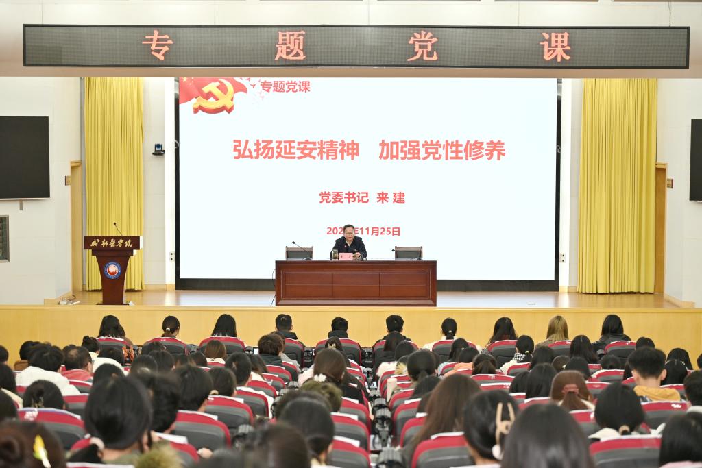 开班仪式结束后,党委书记来建以《弘扬延安精神 加强党性修养》为题,为全体学员讲授了第一堂党课。来建从四个方面阐释了延安精神的核心内涵,指出坚定正确的政治方向是延安精神的灵魂,解放思想、实事求是的思想路线是延安精神的精髓,全心全意为人民服务是延安精神的本质,自力更生、艰苦奋斗的创业精神是延安精神的显著特征。来建要求,全体学员要做到“六个带头”,从加强政治修养、深化理论学习、涵养道德操守、遵守纪律规矩、加强作风建设、提升能力本领等方面提升党性修养。来建强调,加强党性修养是一辈子的事,全体学员要培根铸魂守初心,笃行实干促发展,真正将党性内化于心、外化于行,为学校高质量跨越式发展做出积极贡献。