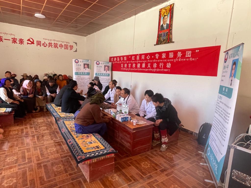 成都医学院“红医同心·专家服务团”走进甘孜在六个帮扶村全覆盖开展健康义诊。4名专家积极为农牧民群众听诊把脉、问病询情、送医送药,把学校的关怀和健康送到群众身边。义诊行动不仅给当地群众看病就医提供便利,还提高了群众的卫生健康意识。据统计,活动累计义诊500余人,发放药品1.3万元,受到当地群众点赞和好评。